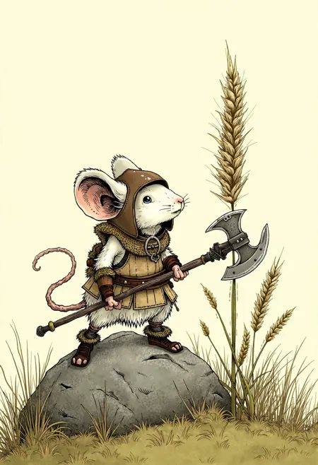Trained to create cute mice in the style of Mouse Guard. Please feel free to share your images if you want to, it will help me with future versions of the LoRA, thanks!