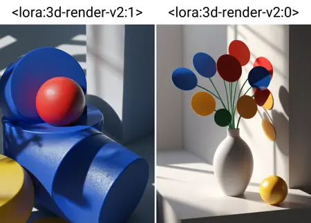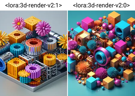 Prompt: 3d render, [your prompt here] lora:3d-render-v2:1