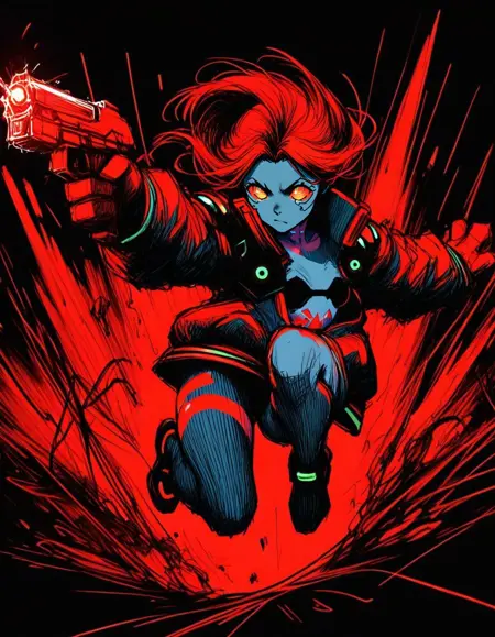 pink sketch, monochrome, black theme," 以强化风格。愤怒的笔触: 可尝试添加 "