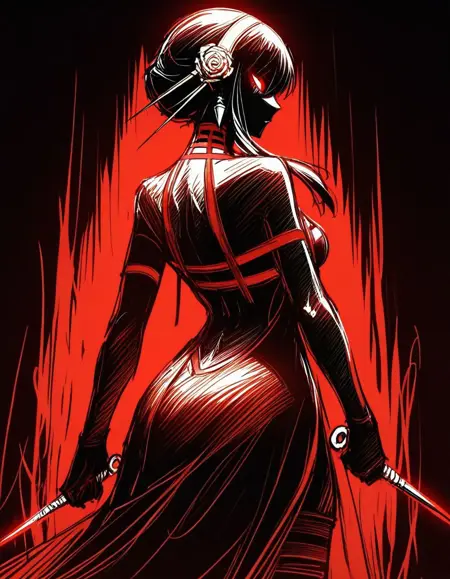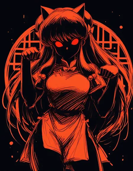 red sketch, black background, black theme, monochrome," 以进一步强化风格。请参阅样本元数据了解使用案例。