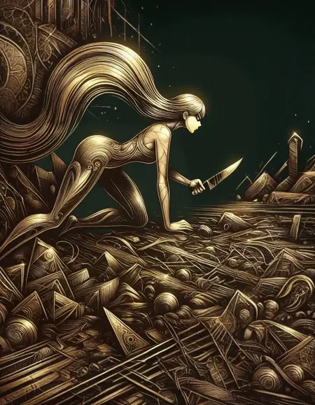 - “在创作者的掌控之下,这些笔触桀骜不驯,拒绝屈服,只沿着自己意志所定的 rigid 路径滑行。每一条线都孤高独立,疏离而不可触及,不愿交融或共享空间。然而,它们以冰冷的精确,构筑起一座虚假的宏伟殿堂——一座外表辉煌、内里空洞的壮丽幻象,却足以夺人目光。”