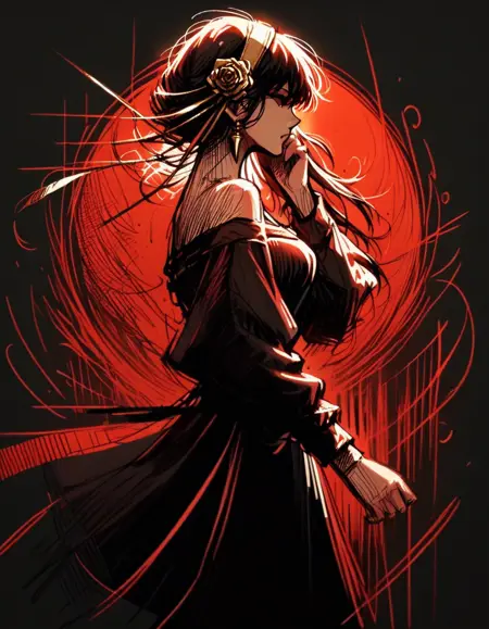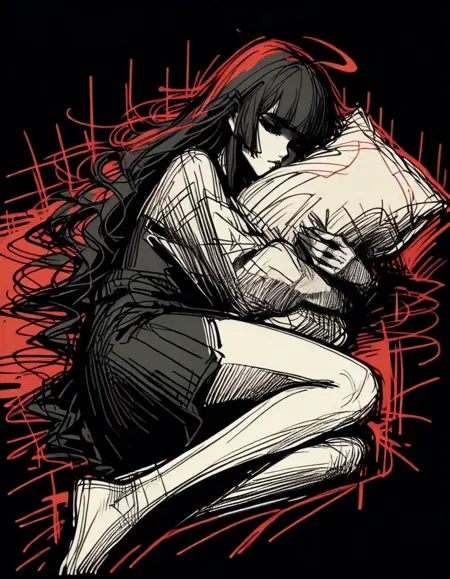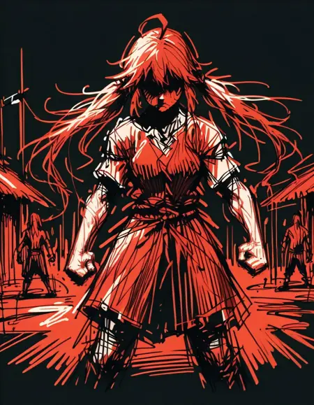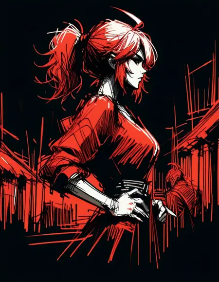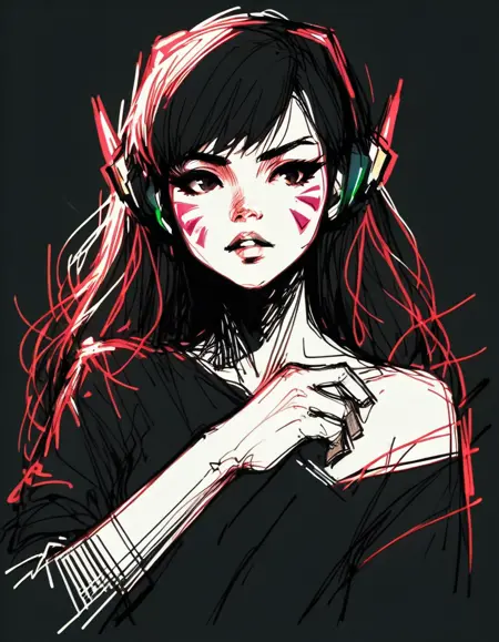 pink sketch, monochrome, black theme,"를 추가하라.분노의 붓질: 스타일을 더욱 강화하려면 "