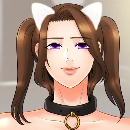 20. ((sexy black slave neck collar, fluffy white fake cat ears, )) + short twin pigtails