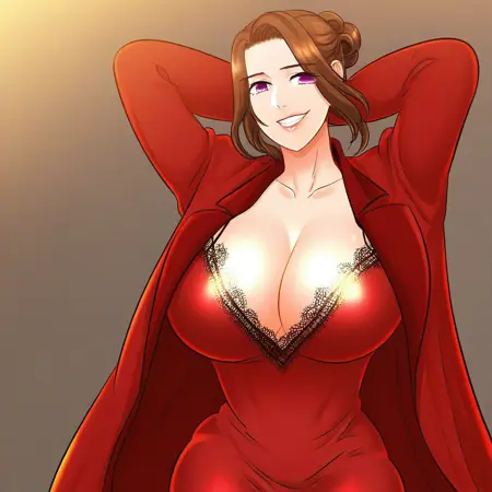 15. ((sexy erotic red night dress with black lace edge, obscene cleavage, huge cleavage, sexy red night coat with black lace edge, ))