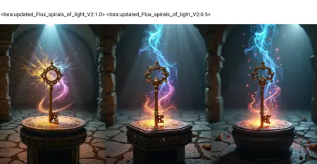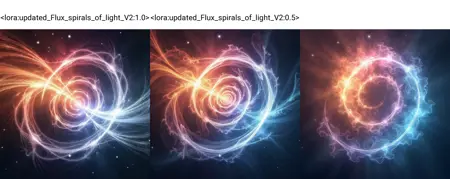 저는 FLUX가 원하는 방식으로 추상적인 빛의 나선을 그려내지 못했기 때문에 이를 위한 LoRA를 제작했습니다. 이 LoRA는 추상적인 소용돌이에 능하며, FLUX는 항상 일종의 장면을 만들려고 시도합니다. 시도해 보세요.