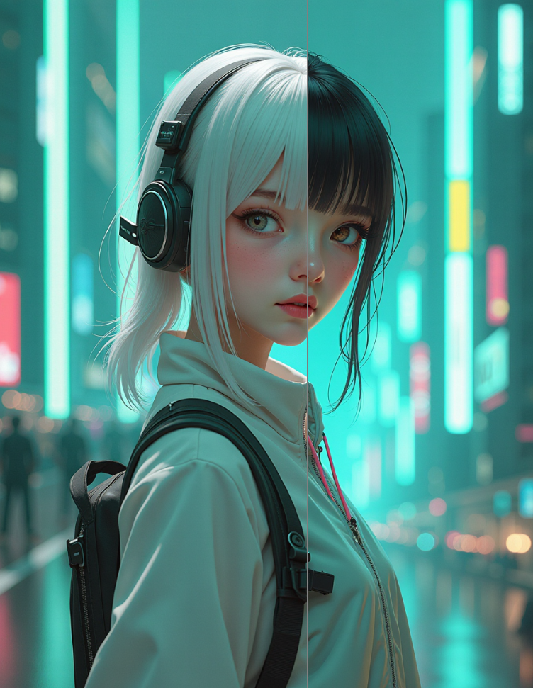 On the premise of keeping the seed value unchanged, we can see that the girl's hair is turned white accurately without changing the composition.