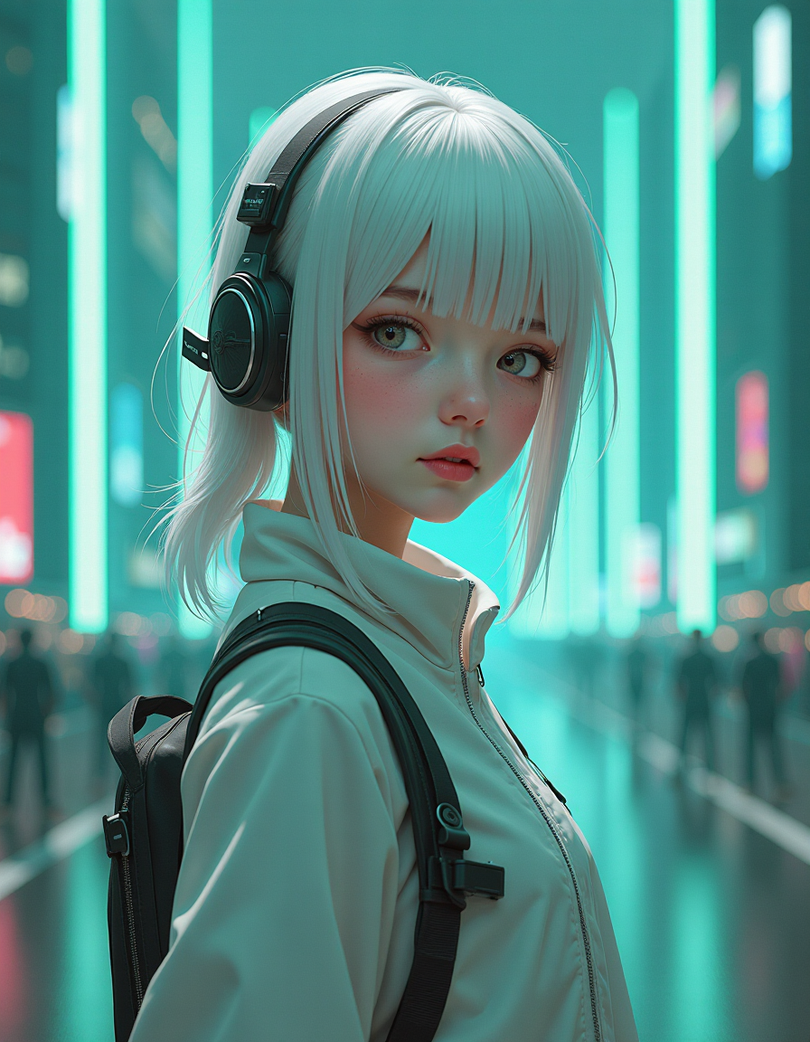 After that, input the instruction through the big language model: "Change the girl's hair to white."