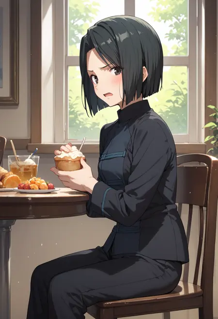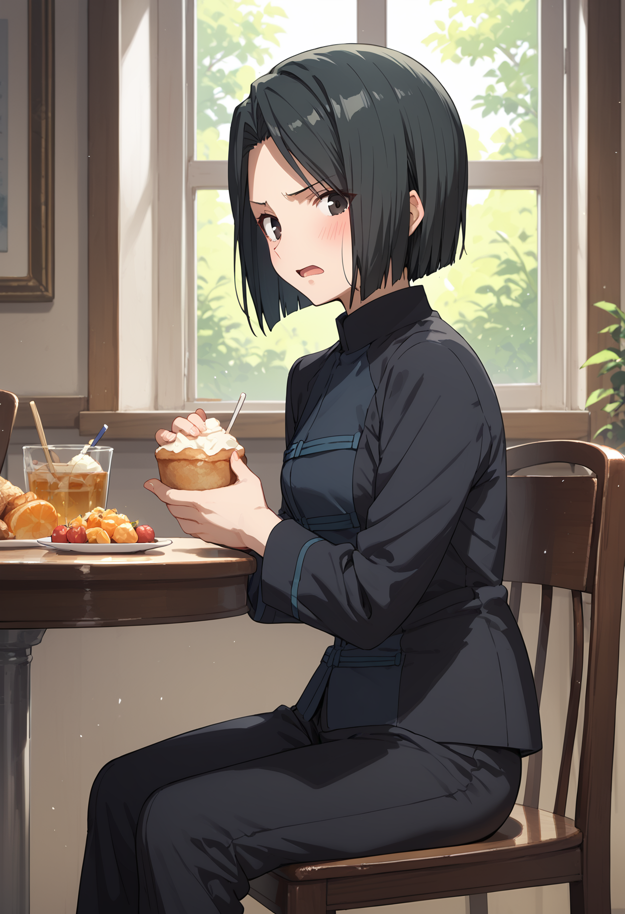 maiya, black hair, black eyes, bob cut