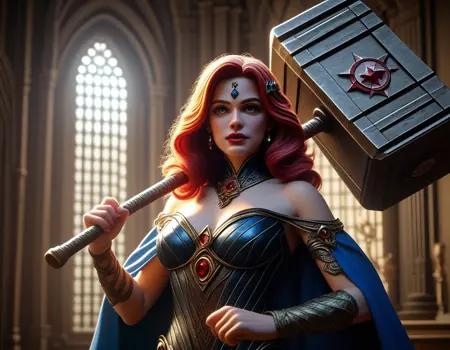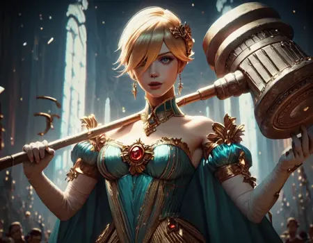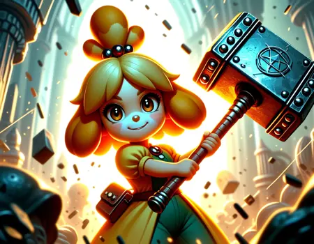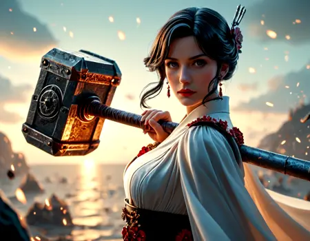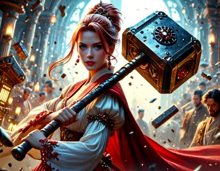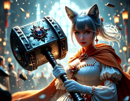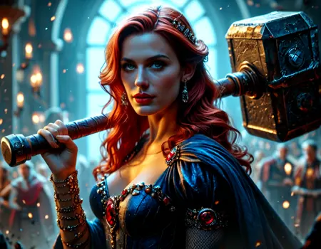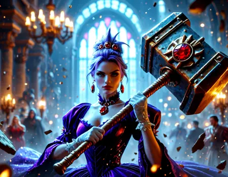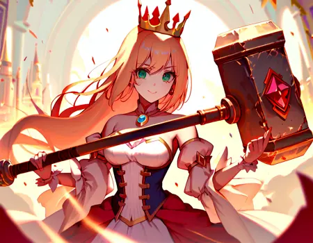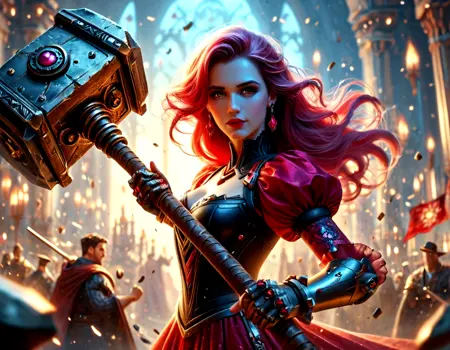 이러한 이미지에 사용된 프롬프트의 핵심은 "HammerTime, 캐릭터 이름, 거대한 해머를 들고 있는"의 변형입니다.