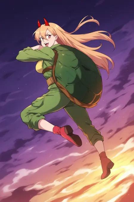 提示词:TMNT,绿色皮肤,乌龟壳,忍者龟,三根手指,单人