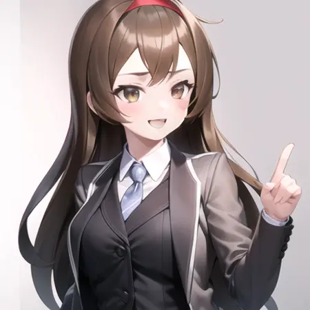ベースのプロンプトは1girl、茶髪、茶目、ヘッドバンド、lora:0.9 がおすすめです。