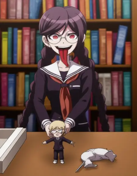 장소: 특정 장소를 학습하려 시도하지는 않았지만, 일부 장소는 충분히 자주 등장했기 때문에 'Hope's Peak's library'처럼 특정 구역을 명시하면 결과를 개선할 수 있습니다. 물리 실험실, 수영장, 기숙사, Toko의 방, 예술실, 무술 도장, 세탁실, 교사 휴게실 등은 애니메이션과 게임에서 모두 수많은 이미지가 학습 데이터에 라벨링되어 있습니다. 단순히 'Hope's Peak'만 언급해도 학교 내에서 생성하는 이미지의 조명을 올바른 방향으로 유도하는 데 도움이 될 수 있습니다.