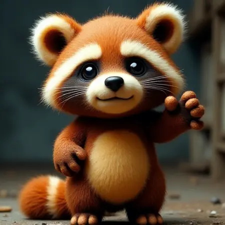 RockySNES, 1raccoon_dog, 棕色毛皮, 白色眼白, 黑色瞳孔, 眼睛闭着, 鼻吻, 尾巴, 站立, 挥手, 开心, 再见, RockySNES 向观众挥手,