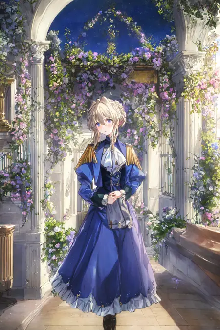 이 LoRA는 애니메이션 시리즈 >바이올렛 에버가든<의 이미지로 훈련되었습니다.