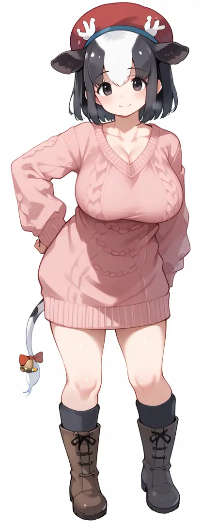 [Alternate Costume] hfc2nd, alternate costume, official alternate costume, casual, sweater, aran sweater, pink sweater, sweater dress, cable knit, black socks, boots, knee boots, black footwear