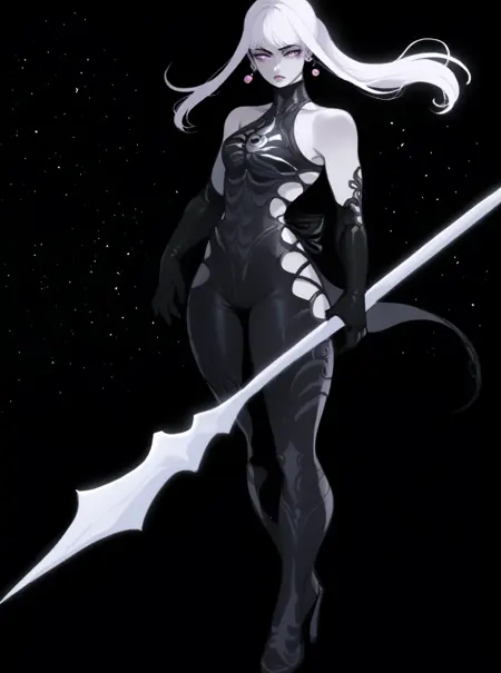 使用Omega时请使用标签:omega_f、1girl、有色皮肤、灰色皮肤、苍白皮肤、白发、长发、马尾辫、侧发、粉眼睛