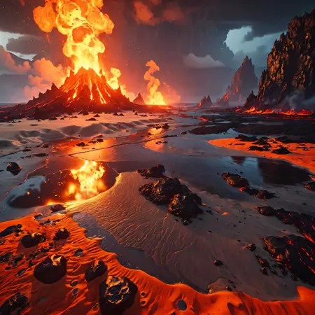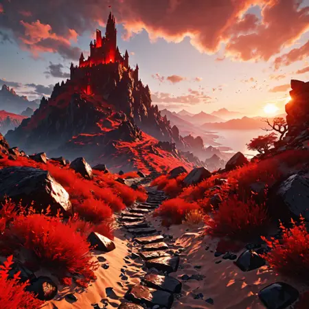 Here's the beginning of a new four-part series I'm making for Elemental planes! This one is the Elemental plane of Fire. Red dragons patrol the sky above: Vicious hellhounds patrol the ground. Volcanoes and mysterious black towers can be seen dimly in the distance, through the ever-present smoke. Not a pleasant place for many, but some may see its charms.