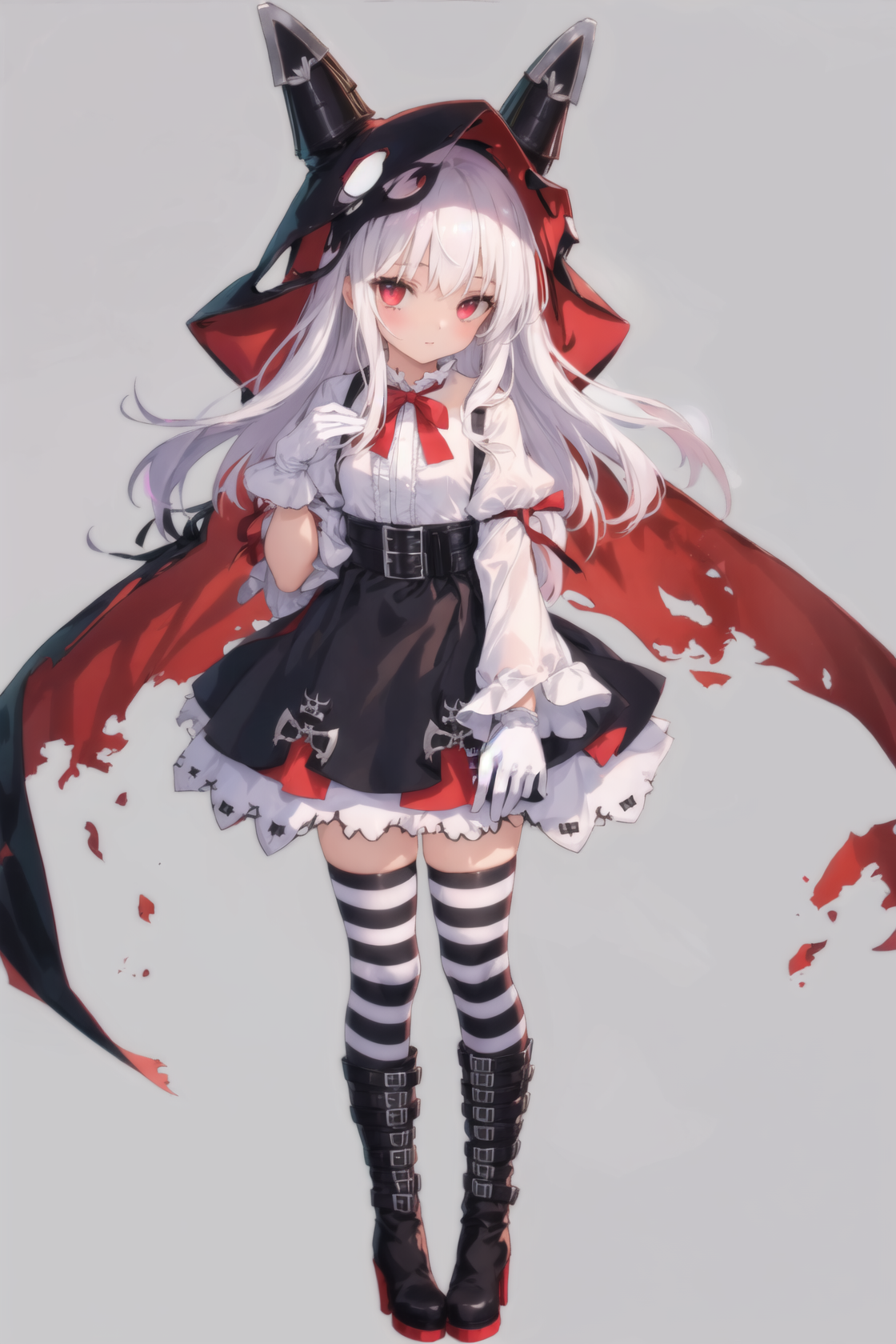 オプション:striped thighhighs、belt boots、white gloves、holding trident