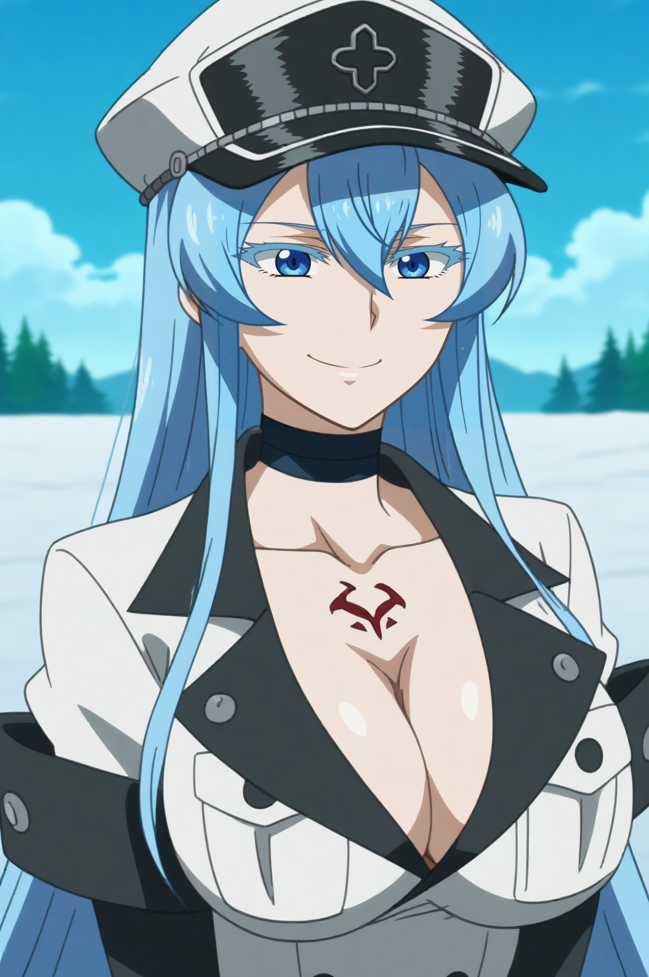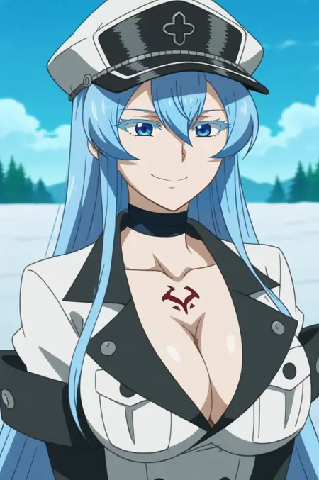 触发词:esdeath,长发,乳房,帽子,乳沟,大乳房,白色制服,军装,头发位于眼睛之间,项圈,极长发,尖顶帽,黑色纹身,胸部纹身,锁骨