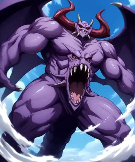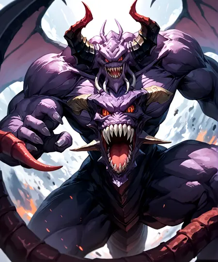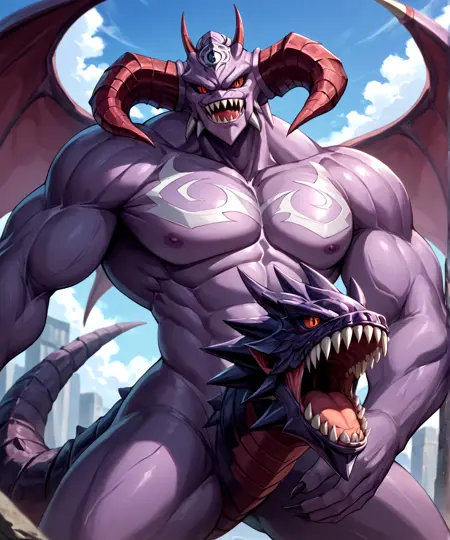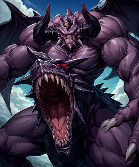 PROMPTS for this model are Zorc, Yugioh_anime, powerful muscular body, purple skin, red eyes, and horns. Adding the prompts demon, monster, sharp teeth, in the style of the anime Yugioh, Zorc Necrophades, sharp teeth, teeth, tail, colored sclera, slit pupils, kaijuu, monster, and giant will help aid the look of the pictures. This lora, like the 1.5 version I made a while back, was hard to make as the unique look of the monster simply does not like to render half the time. So adding those extra prompts will help. Additionally, adding negative prompts like nsfw, and penis will keep the checkpoints in thinking the neck and head stemming from the waist is something adult related.