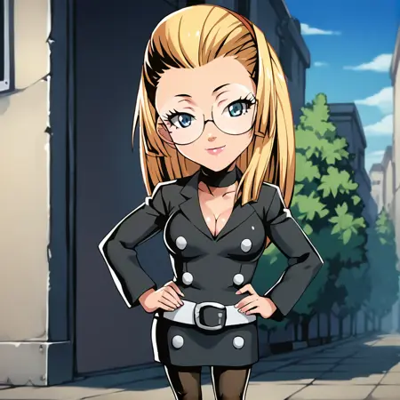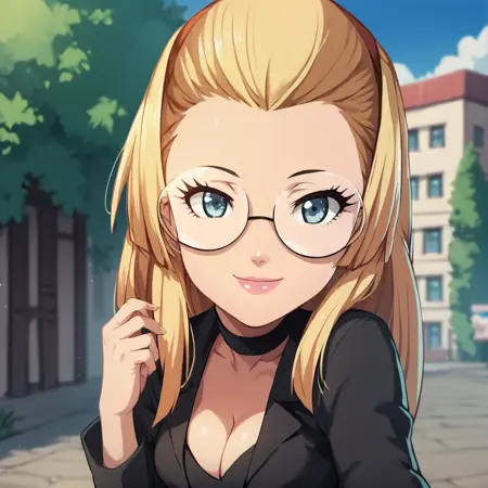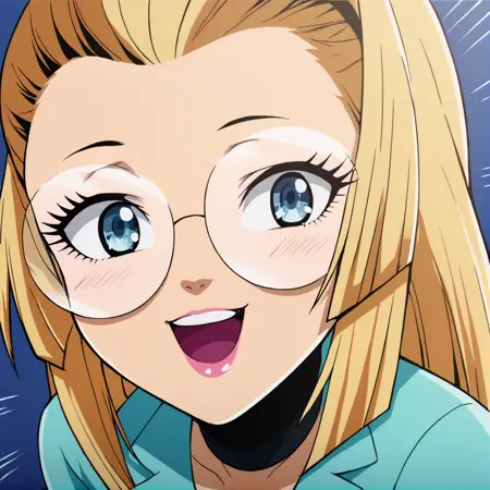 Tags: Silvia, blonde hair, glasses, round glasses, blue eyes, long hair