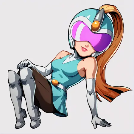 Sexy Silvia: Sexysilvia, blonde hair, blue leotard, skirt, visor, helmet, belt, pontail, white boots, elbow gloves