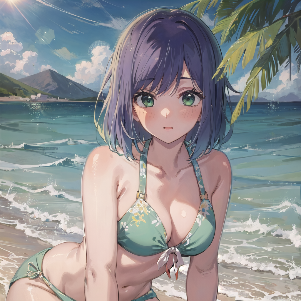 眼睛颜色还原的不是很好,可以尝试通过使用tag:green eyes改善