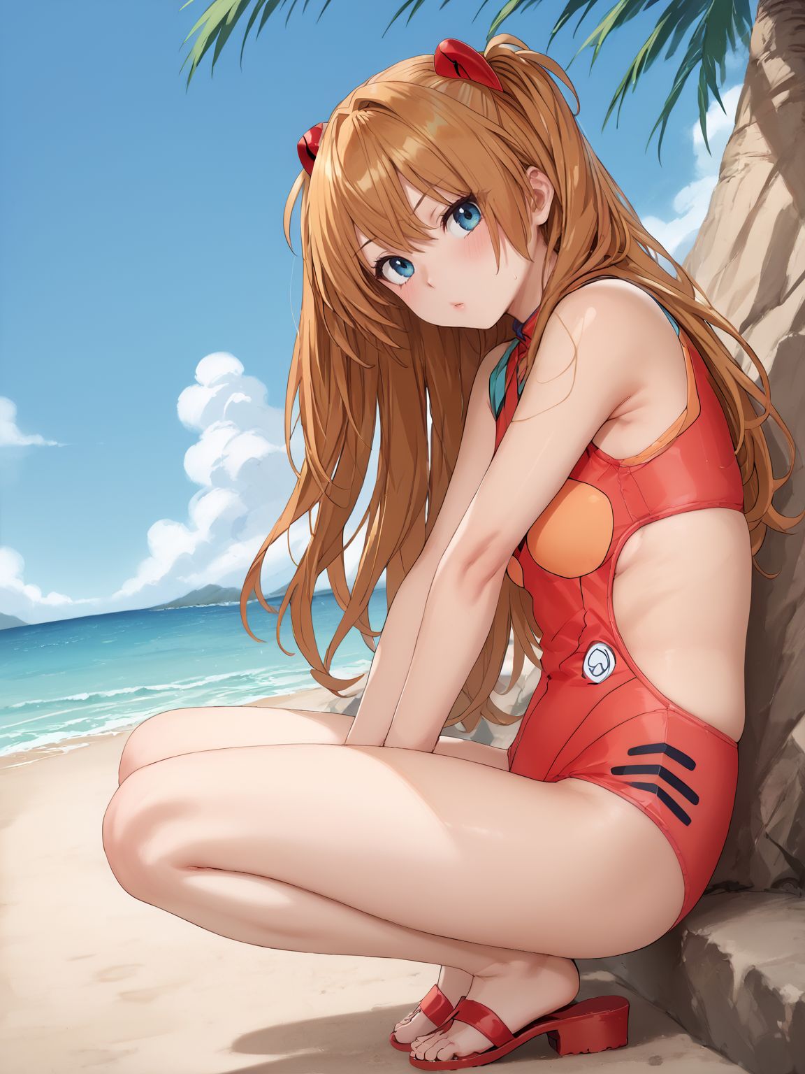 red one-piece swimsuit,one-piece swimsuit,plugsuit,bare shoulders