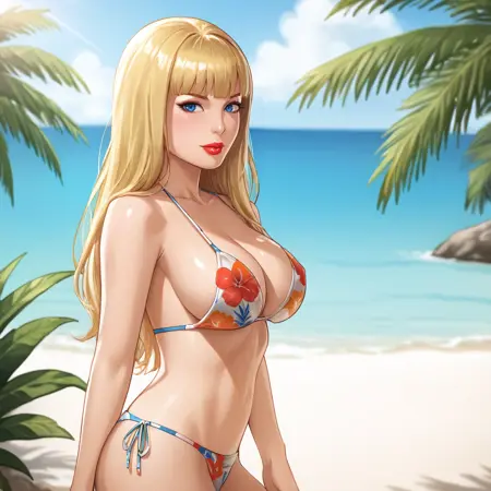 - 带妆容的触发词:MagikMarvel, 1girl, 大胸, 金发, 肩部尖刺, 露胸剪裁, 长发, 黑色手套, 肚脐, 服装剪裁, 露脐, 妆容, 腰带, 肩甲, 口红, 传统媒介, 马克笔(中等), 护肩, 露脐上衣, 眼影, 蓝眼, 肩垫, 嘴唇, 双手叉腰, 西部镜头