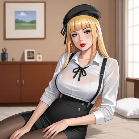 - 带背心的触发词:MagikMarvel, 1girl, 中等胸部, 内衣, 金发, 黑色内裤, 长发, 蓝眼, 齐刘海, 锁骨, 肚脐, 背心, 丁字裤, 透视, 高腰内裤, 西部镜头