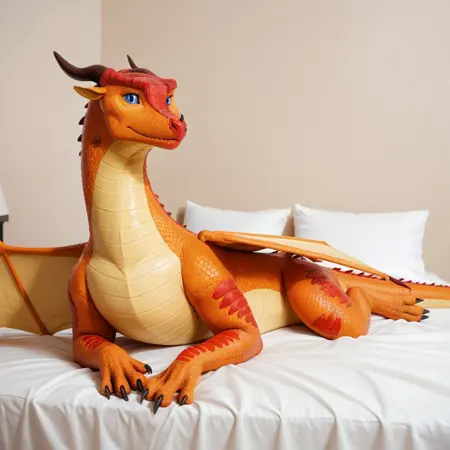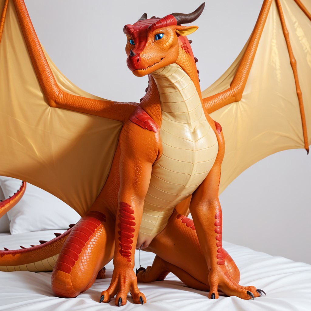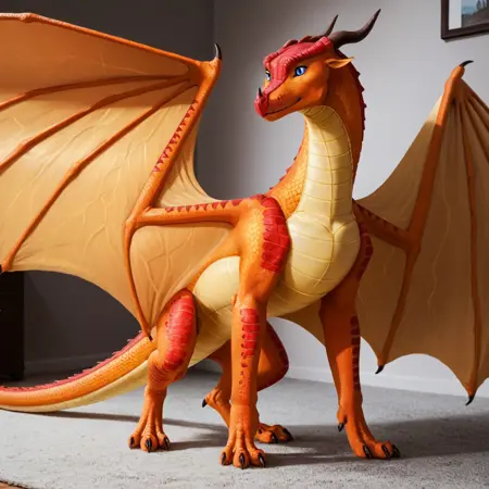 追加プロンプト:dragon, orange scales, orange wings, horns, tail, claws, female, 1girl, yellow eyes, Skywing