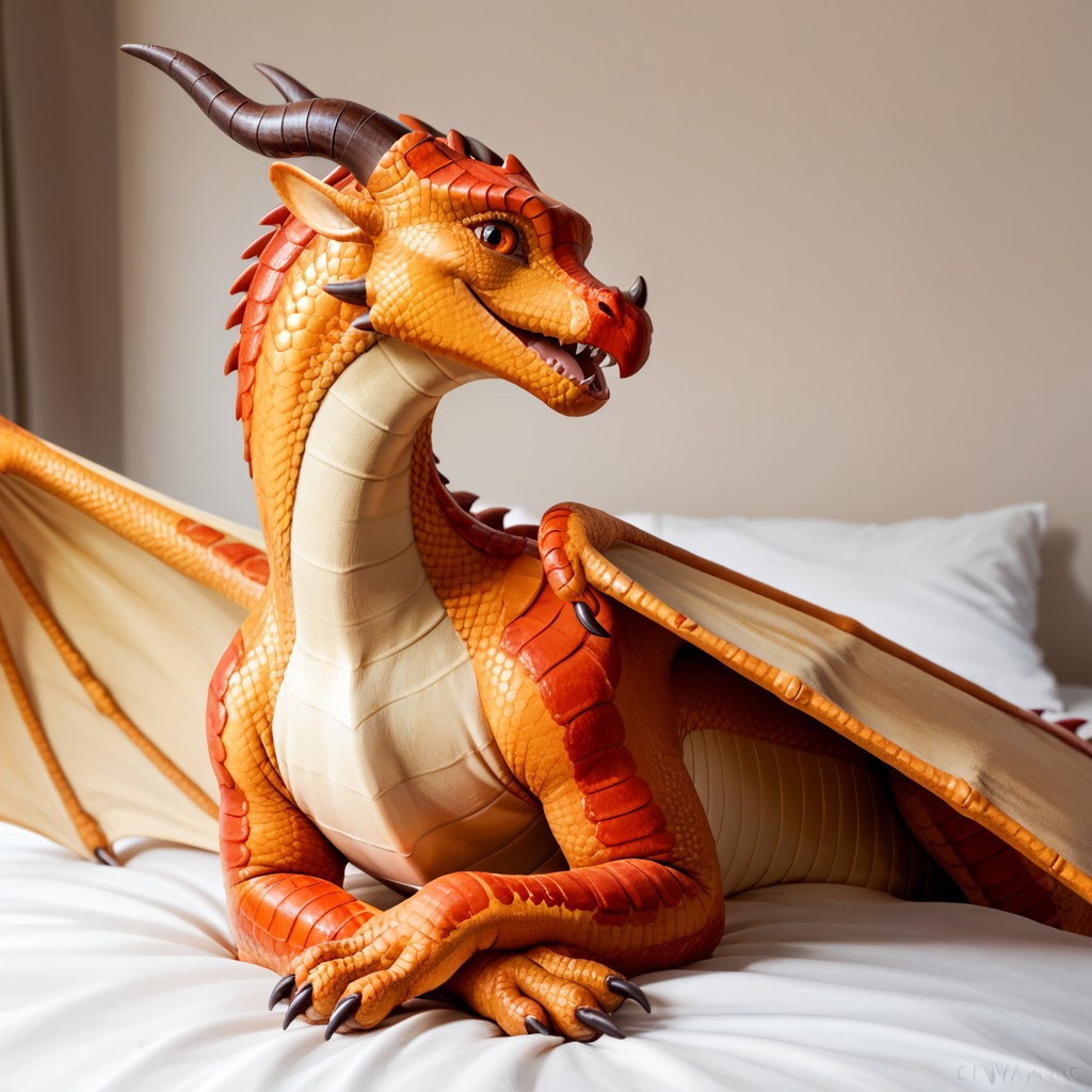 Additional prompts: dragon, orange scales, orange wings, horns, tail, claws, female, 1girl, yellow eyes, Skywing