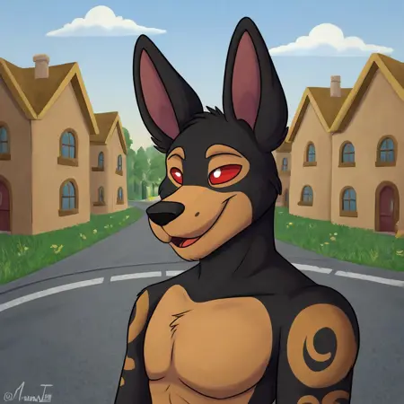 "Darknut[LOZ], Darknut[CHARACTER], 黑色身体, 黑色毛发, 无瞳孔, 红色巩膜, 有色巩膜, 脸部褐色斑纹, 纹身, 纹身图案, 狗耳, 动物耳朵, 兽人, 狗, 无人类, "
