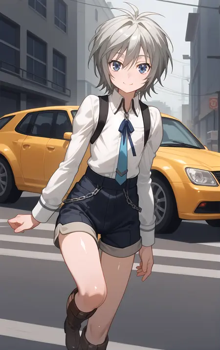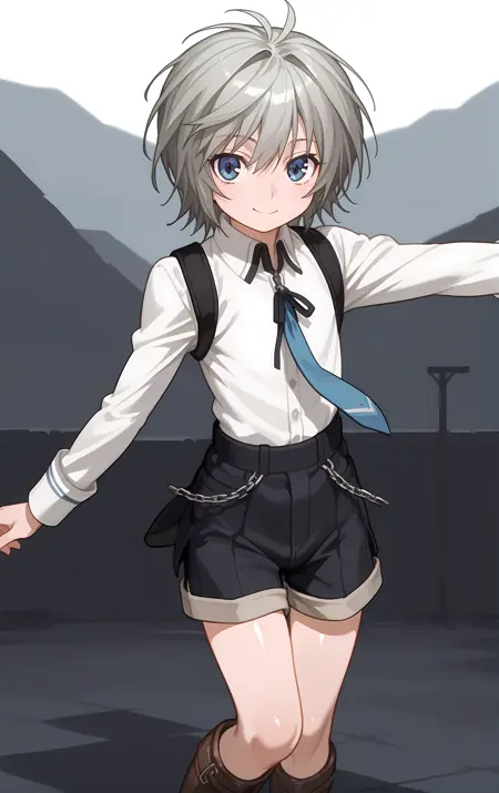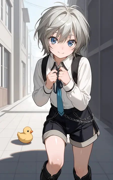 服装 → boots, chain, long_sleeves, necktie, ribbon, school_uniform, shirt, shorts, skirt, suspenders, white_shirt,