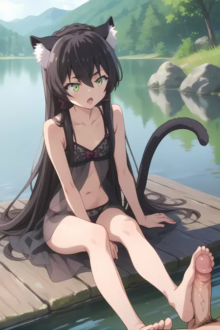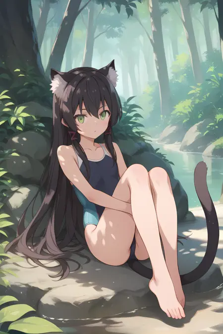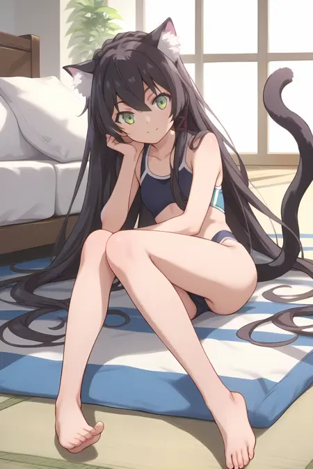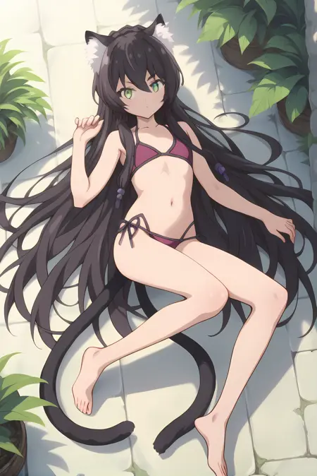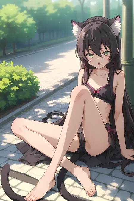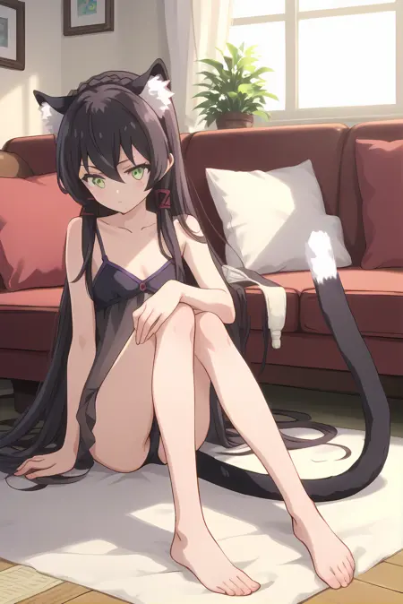 검은 머리카락, 긴 머리카락, 고양이 꼬리