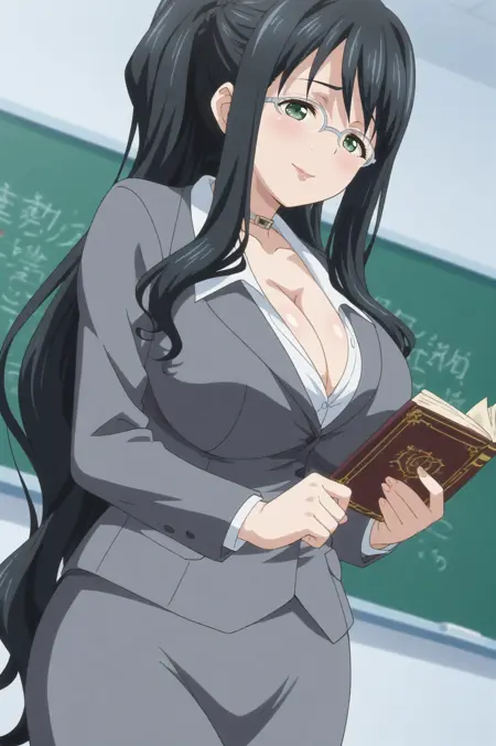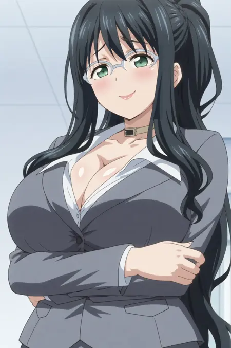 トリガー:なつきあおい、成熟した、胸、ライン、眼鏡、長い髪、ポニーテール、フォーマル、大きな胸