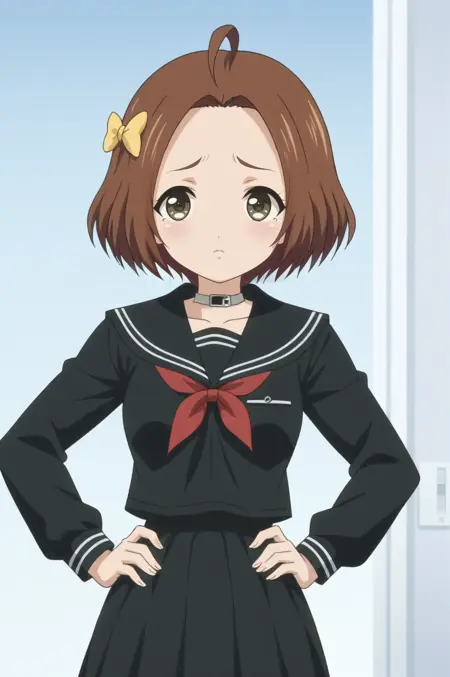 rika makiba,serafuku,short hair,hair bow,bow,black serafuku