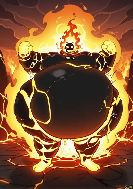 Optional Prompts (for morbidly inflated): immobilization, stomach on ground, immobile, gigantic, swollen, laying on stomach, obese,