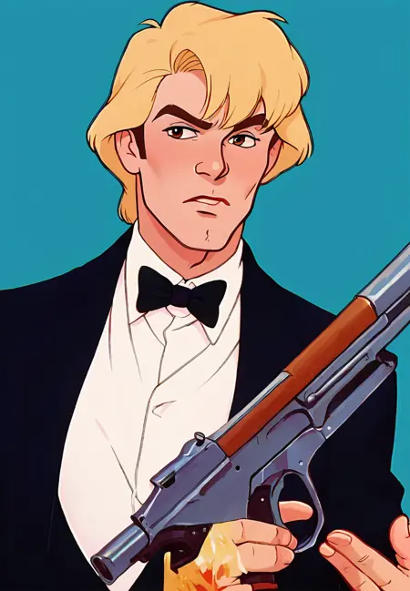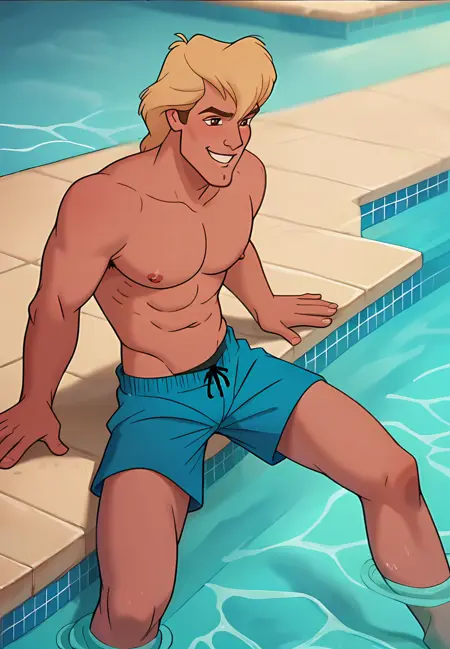 If you want the movie outfit, add "blue tank top and blue pants" to the prompt.