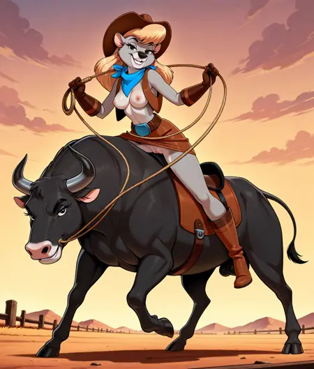 clementine_clevenger, toon (style), flat color, grey fur, blonde hair, original, long hair, medium breasts, clementine_hairstyle, black eyes,
