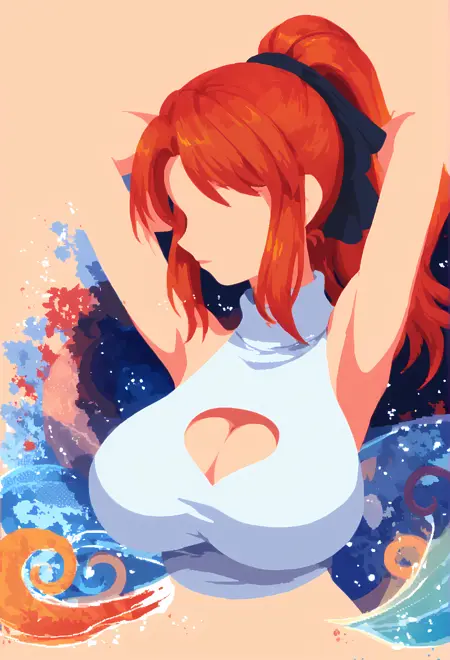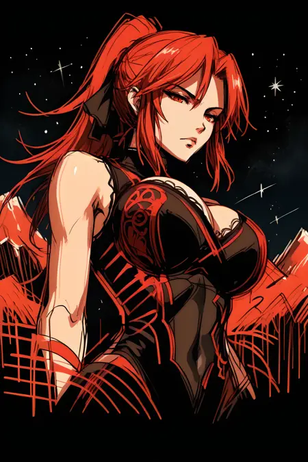 Main tags: SDAgnis, red eyes, slit pupils, expressionless, red hair, large breasts,