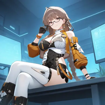Dreamseeker, DS_Fem, 编发马尾, 棕色头发, 长发, 发饰, 眼镜, 下框眼镜, 棕色眼睛,