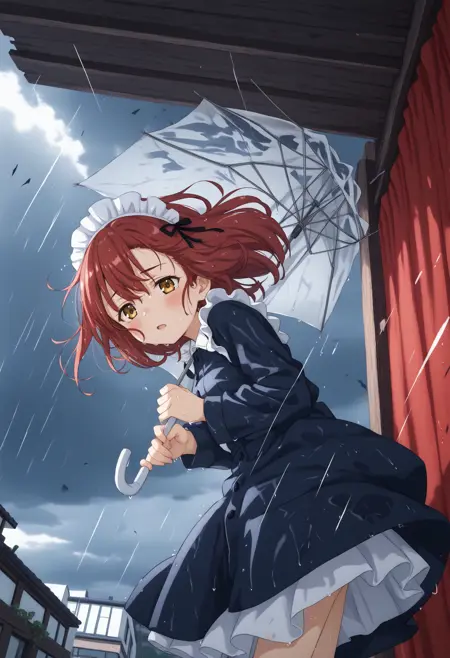 这是一款强风导致雨伞翻倒并损坏的LoRA。