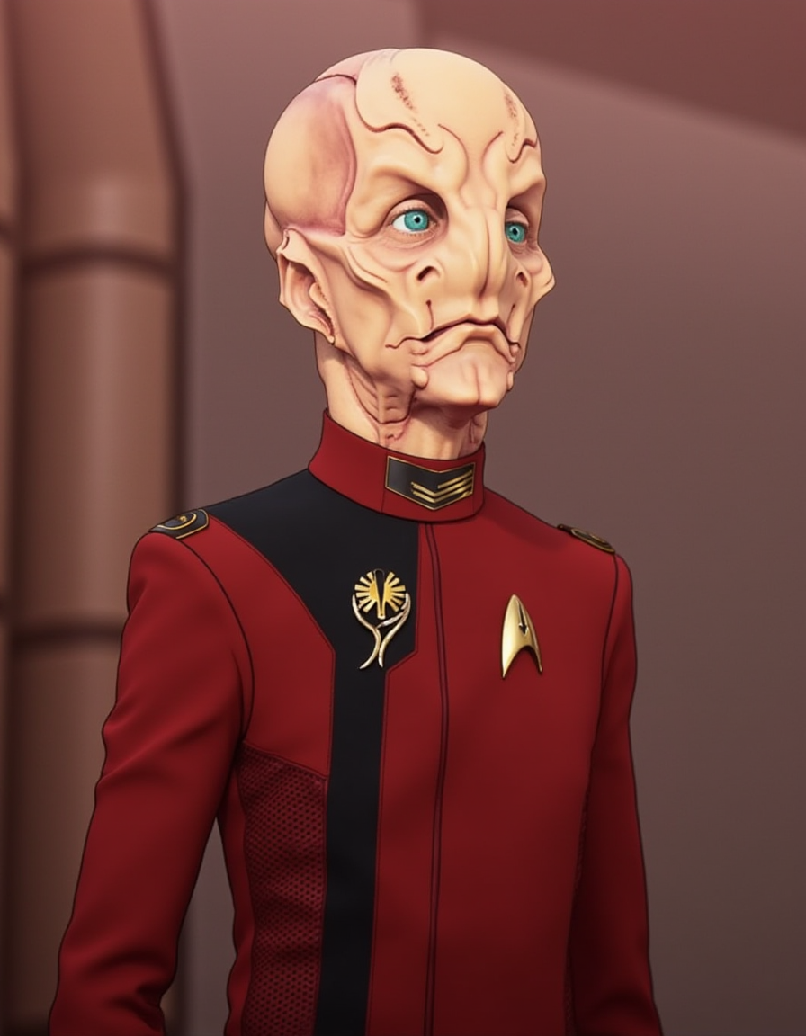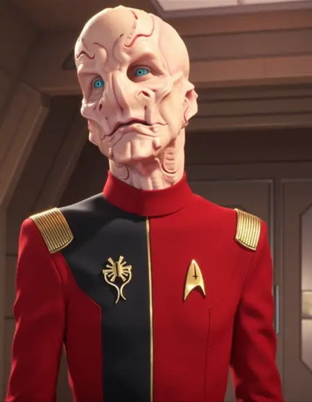 - "32세기 디스커버리 빨간 유니폼", "32세기 배지", "외계 생물 형태", "대머리", "사루", "파란색 22세기 디스커버리 유니폼 골드", "22세기 디스커버리 배지 골드", "파란색 22세기 디스커버리 유니폼 실버", "22세기 디스커버리 배지 실버".
