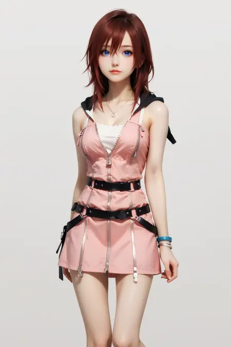 옷 프롬프트: 드레스, 소매 없음, 분홍 드레스, 후ood, 벨트, 소매 없는 드레스, 목걸이, 지퍼, 후ood 내림, 팔찌, 지퍼 풀탭, 단추, 주름 드레스, 벨트 버클, 부츠, 짧은 드레스
