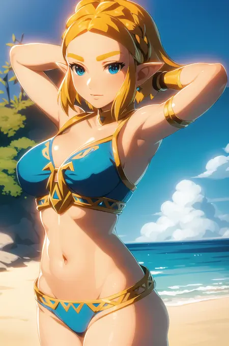 <lora:zelda_shorthair_v5:0.6>,zelda\(princess\), 1girl, solo, breasts,short_hair,