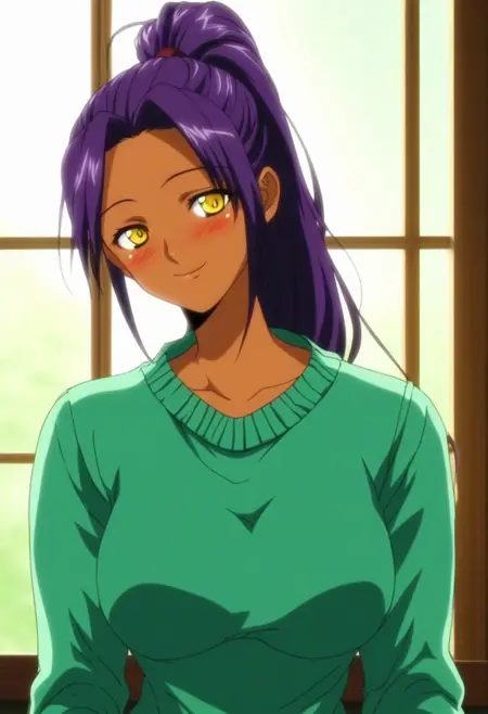 hk_as, score_9, score_8_up, score_8, BREAK, anime screencap 1girl, 1girl, female focus, (upper body), long hair, looking at viewer, inside, sunny, forehead, blouse, gentle smile, blush, one eye closed