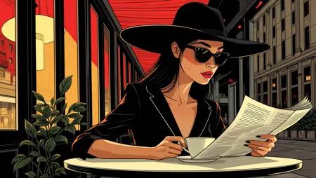 ヴィンテージでシネマティック、かつ大胆。クラシックなパルプフィクション時代を彷彿とさせます。赤と黒などの強いコントラスト色を駆使し、劇的で緊張感ある雰囲気を生み出します。キャラクターは鋭くクリーンな線と誇張された特徴で描かれ、緊張と不思議さを強調しています。全体的な美意識はノワールとコミックアートからインスパイアされており、感情豊かなキャラクターと陰鬱な都市的設定を通じた物語表現に焦点を当てています。このスタイルは、20世紀中頃のパルプ小説やグラフィックノベルの粗く、スリリングな本質を捉えています。