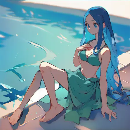 1girl, Liko, blue hair, short hair, green hairclip, blue eyes