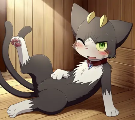 『青の祓魔師』の黒い悪魔の猫、クロ向けの簡単なものです。複数の尾は一貫していません。悪魔形態はありません。腕の白い模様も一貫していません。十分にテストしていませんが、プロンプトのガイドとして例をご確認ください。
